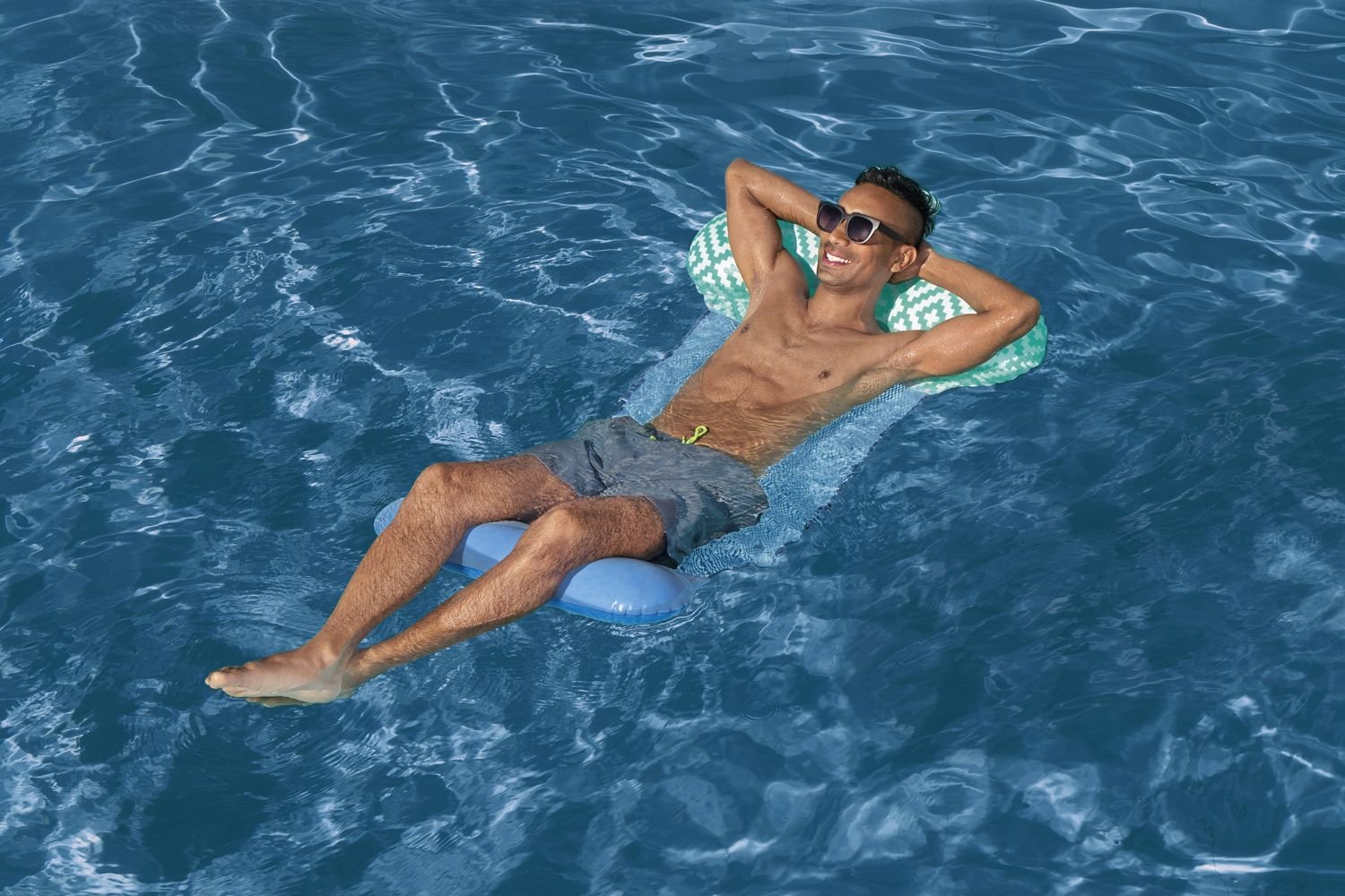 Discover the Bestway® Comfort Plush™ pool hammock – your ultimate companion for relaxation and water fun in one! Measuring 124 x 80 x 22 cm, this hammock from Bestway® offers unrivalled comfort and versatile options for enjoying the water. The Comfort Plush™ pool hammock is more than just an ordinary floating mat. Its soft Comfort Plush™ surface with non-stick coating prevents the material from heating up too much, while the colour of the material becomes brighter and more intense on contact with water, providing a visually stunning experience. The CoolDown™ mesh surface is not only comfortable, but also durable, as it effectively prevents damage. But the best is yet to come: this pool hammock is a convertible 4-in-1 construction. You can use it as a flat lounge, transform it into a cosy chair lounge, use it as a relaxing hammock or even use it as a comfortable saddle seat. The Comfort Plush™ pool hammock can be inflated in a flash and is as easy to transport as it is to store. The practical repair patch allows minor damage to be repaired quickly.