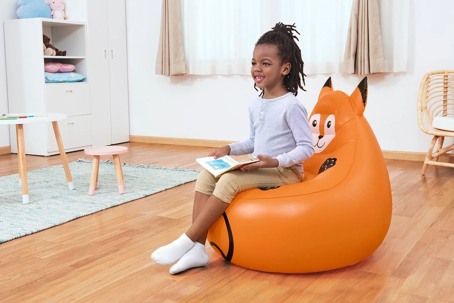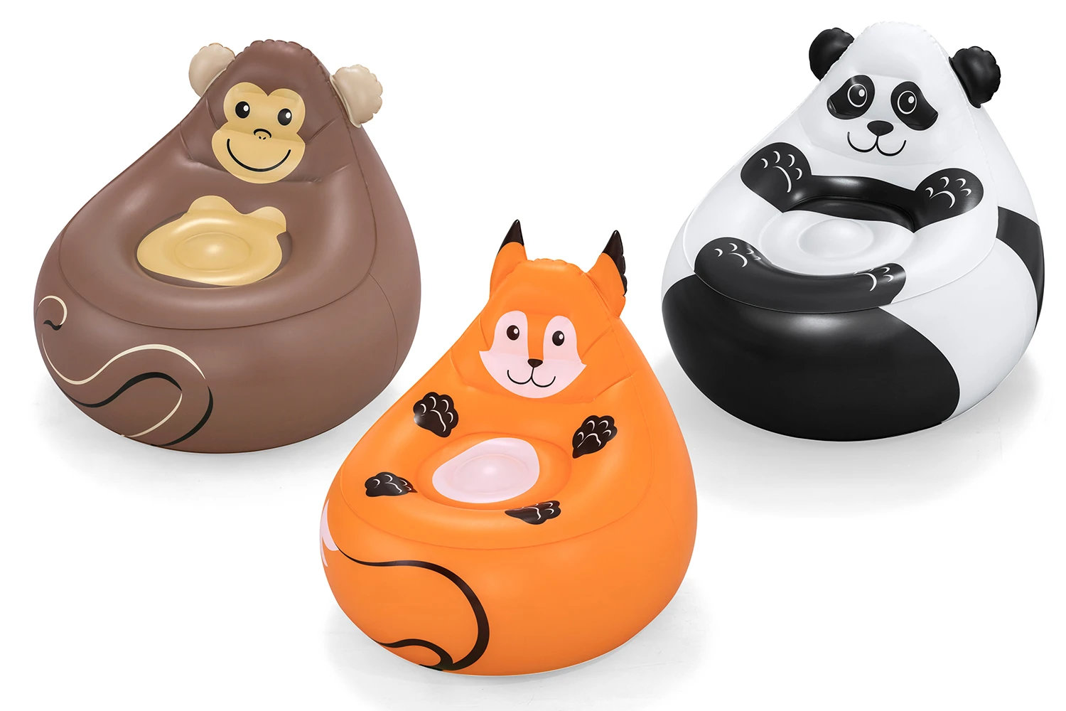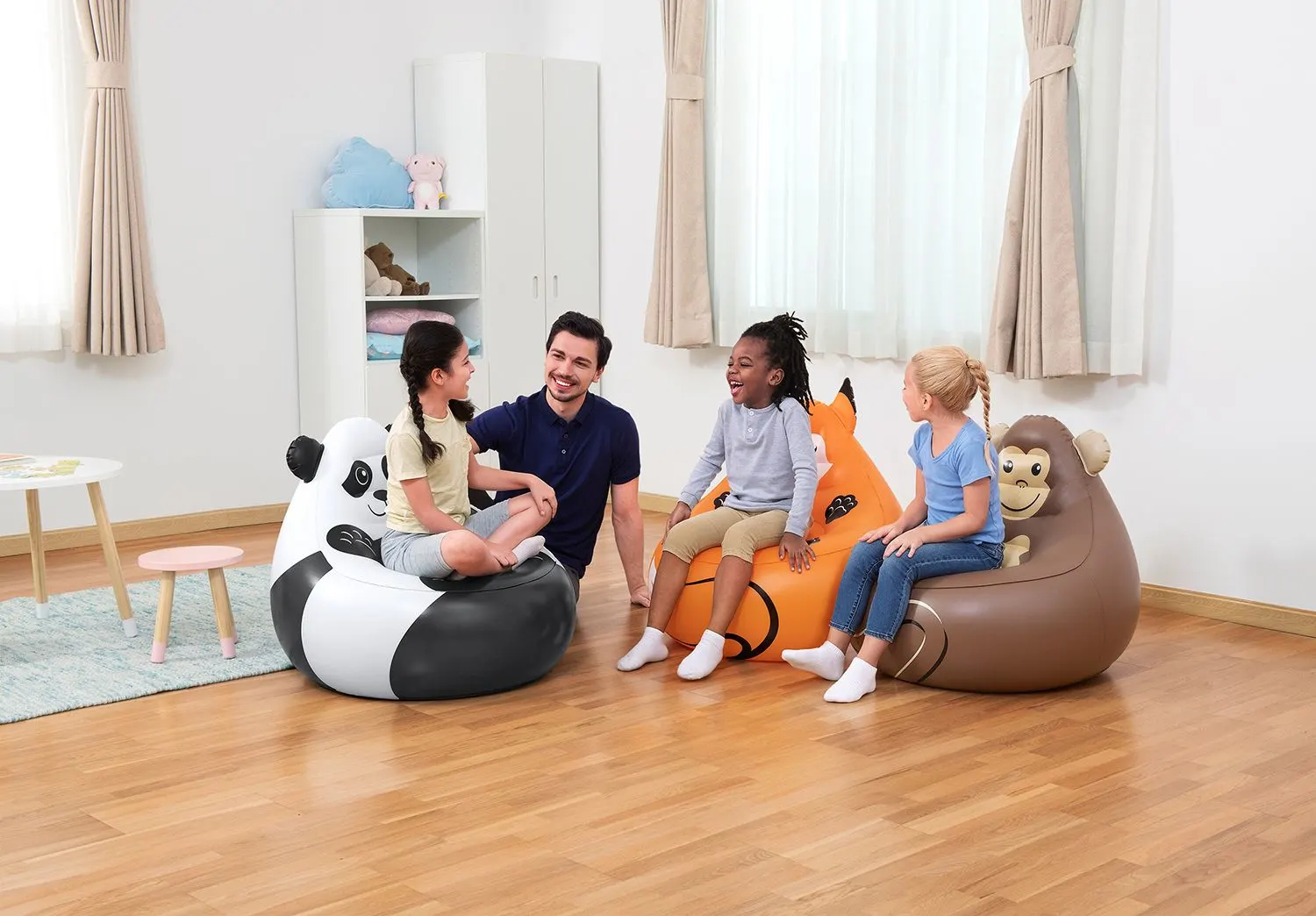 With the Bestway® Cozy Critters™ air chair, your children can cuddle up with one of the happiest animals in the forest. In the graphic of a cheerful animal with a comfortable seat in the centre, this air chair can be inflated in just a few minutes and is ready for immediate use. This creates a lovely retreat for reading or simply relaxing. The chair can be deflated as required and stowed away to save space. This means that your child always has a flexible seat whenever one is needed.