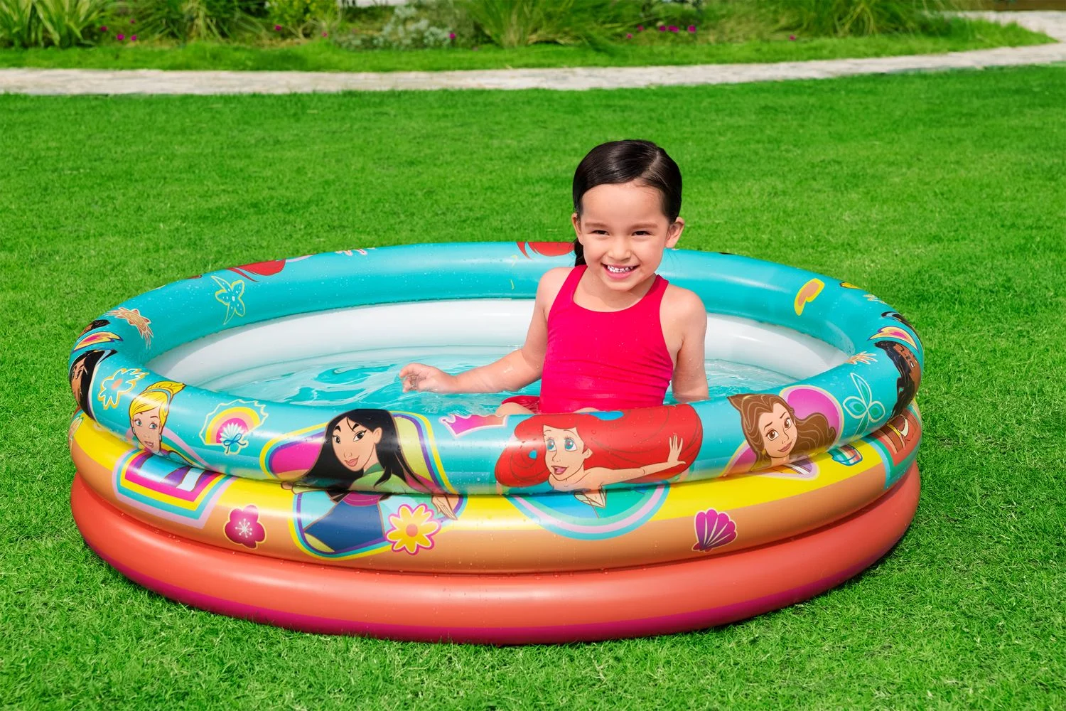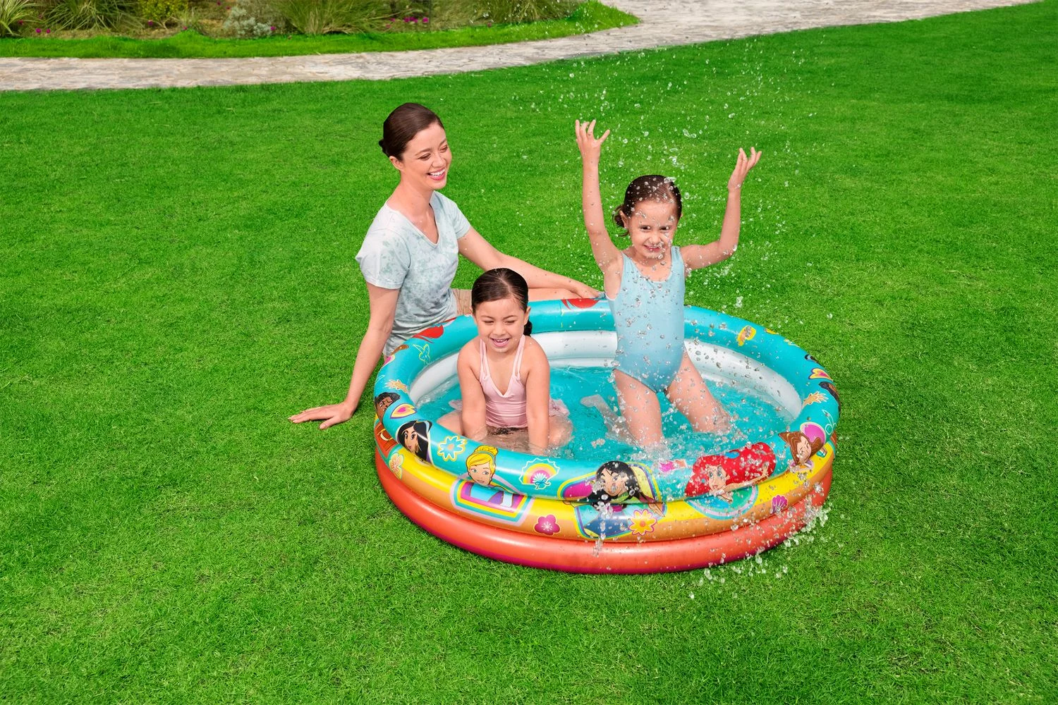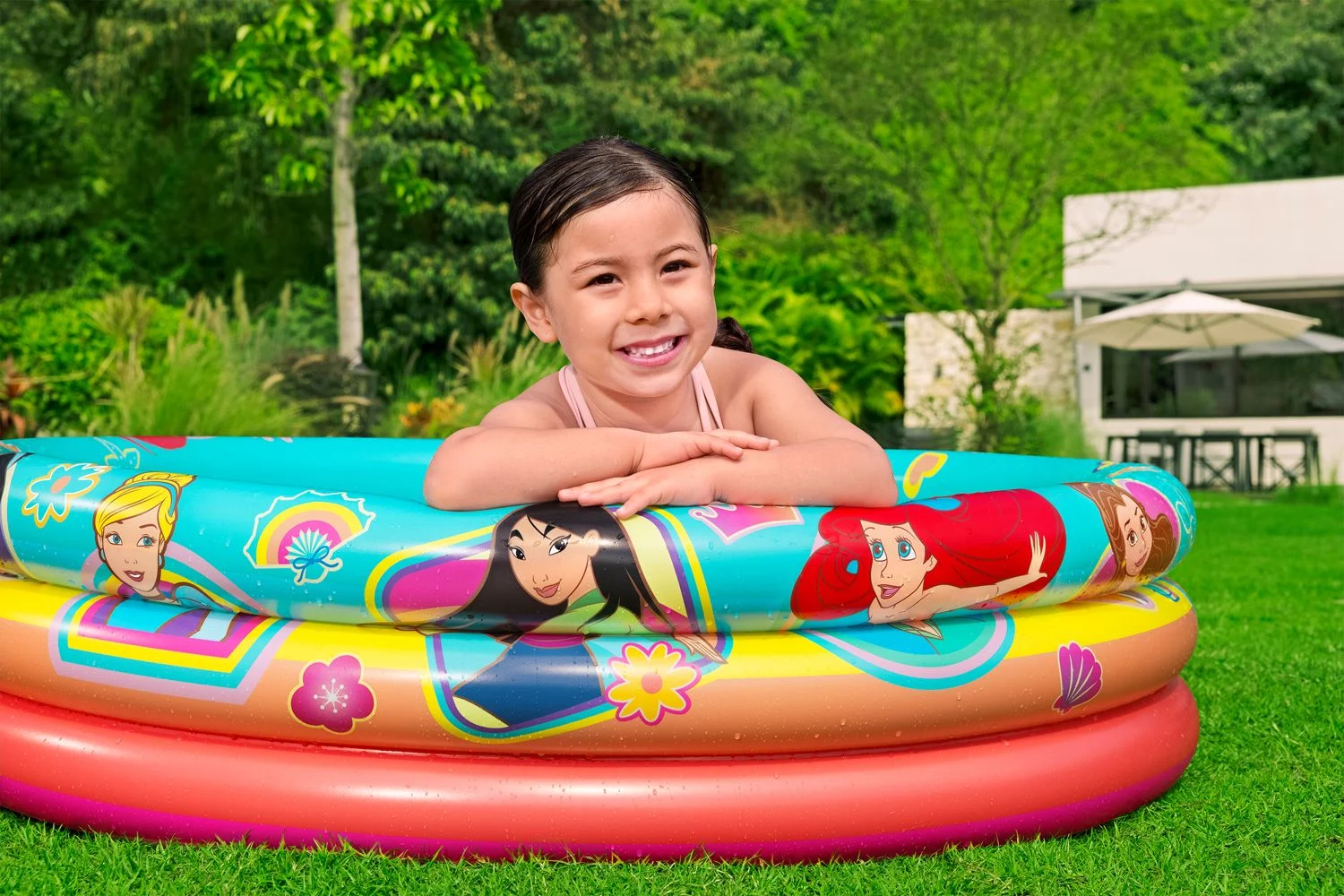 This inflatable baby pool with 3 rings is ideal for children aged 2+ and offers durability and stability for endless hours of play. It’s easy to set up and take down, so your child can be playing in the garden in no time! With a water capacity capacity of 200 litres and the enchanting faces of the Disney® princesses, your child will really enjoy the summer.