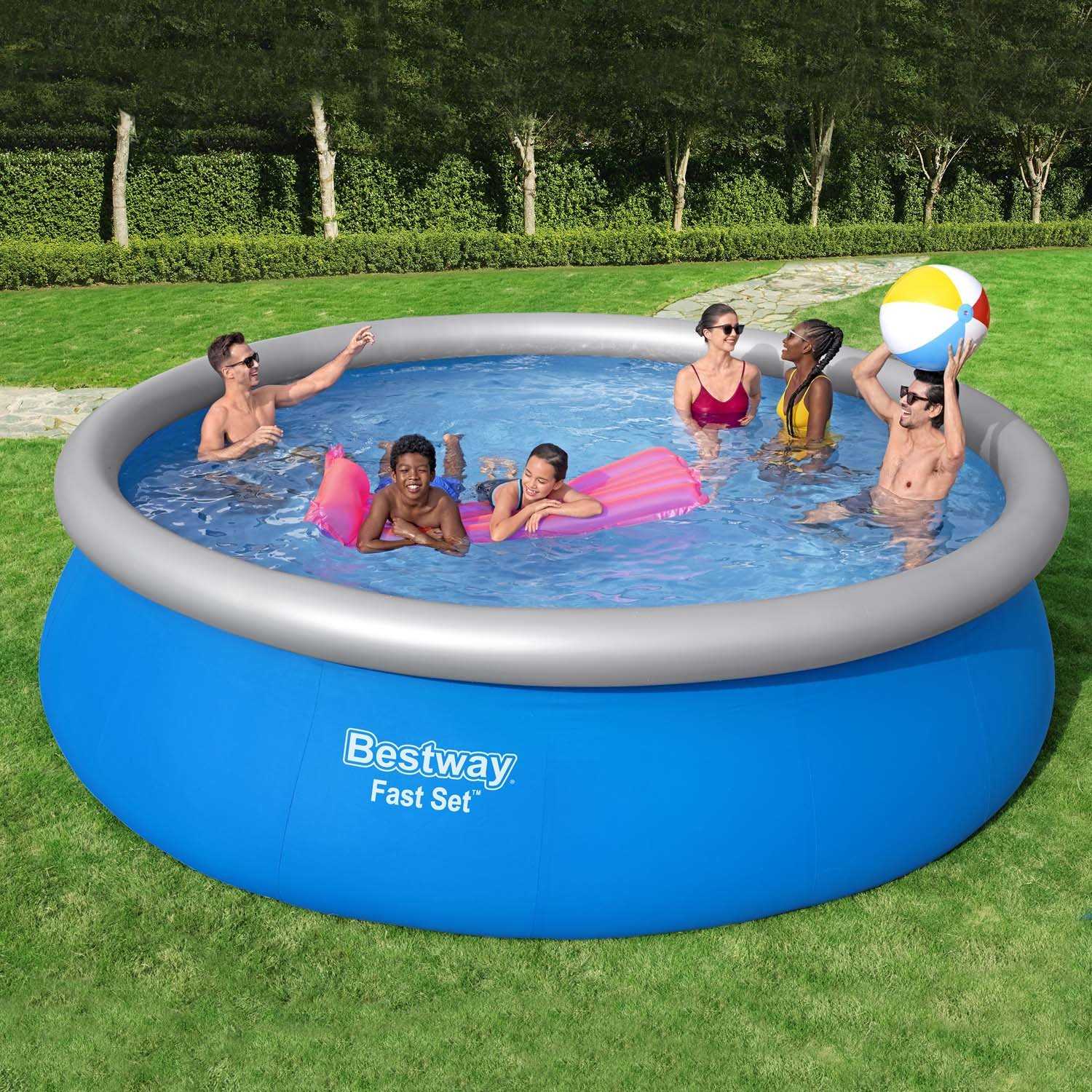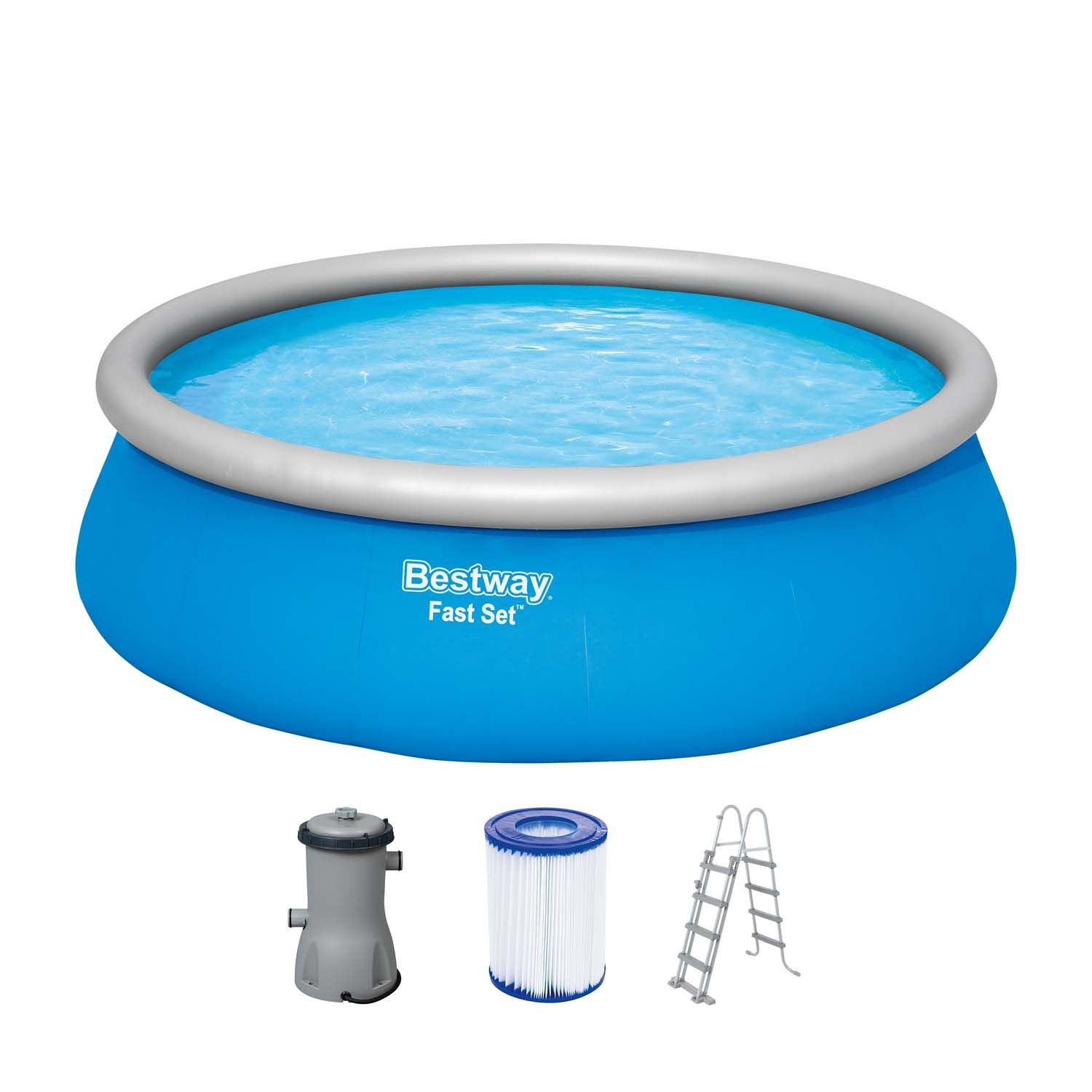 The set also includes a filter pump and a ladder. The Fast Set™ above ground pools from Bestway® is the ideal choice for families looking for a quick and easy solution for their own pool in the garden at home!