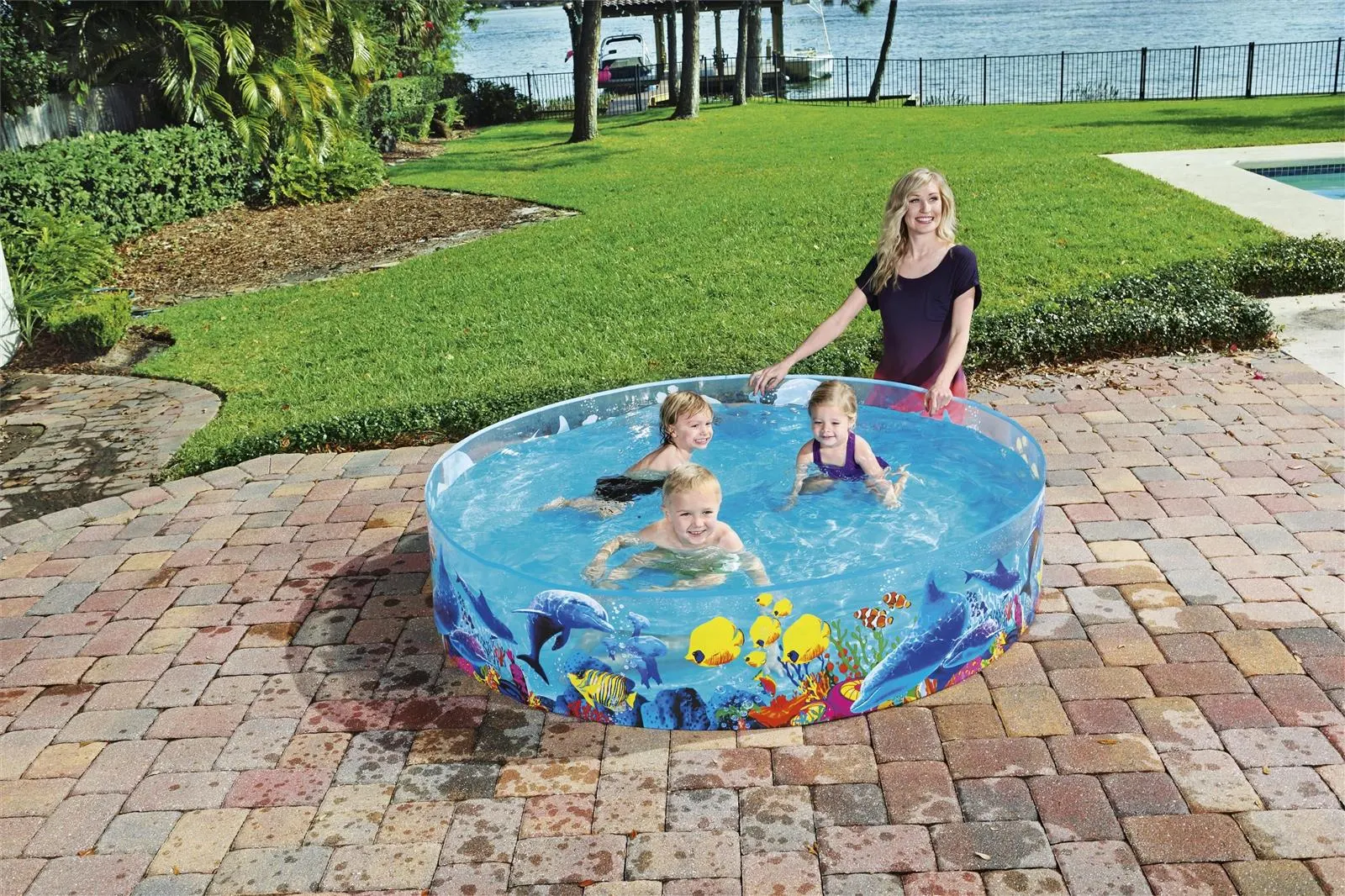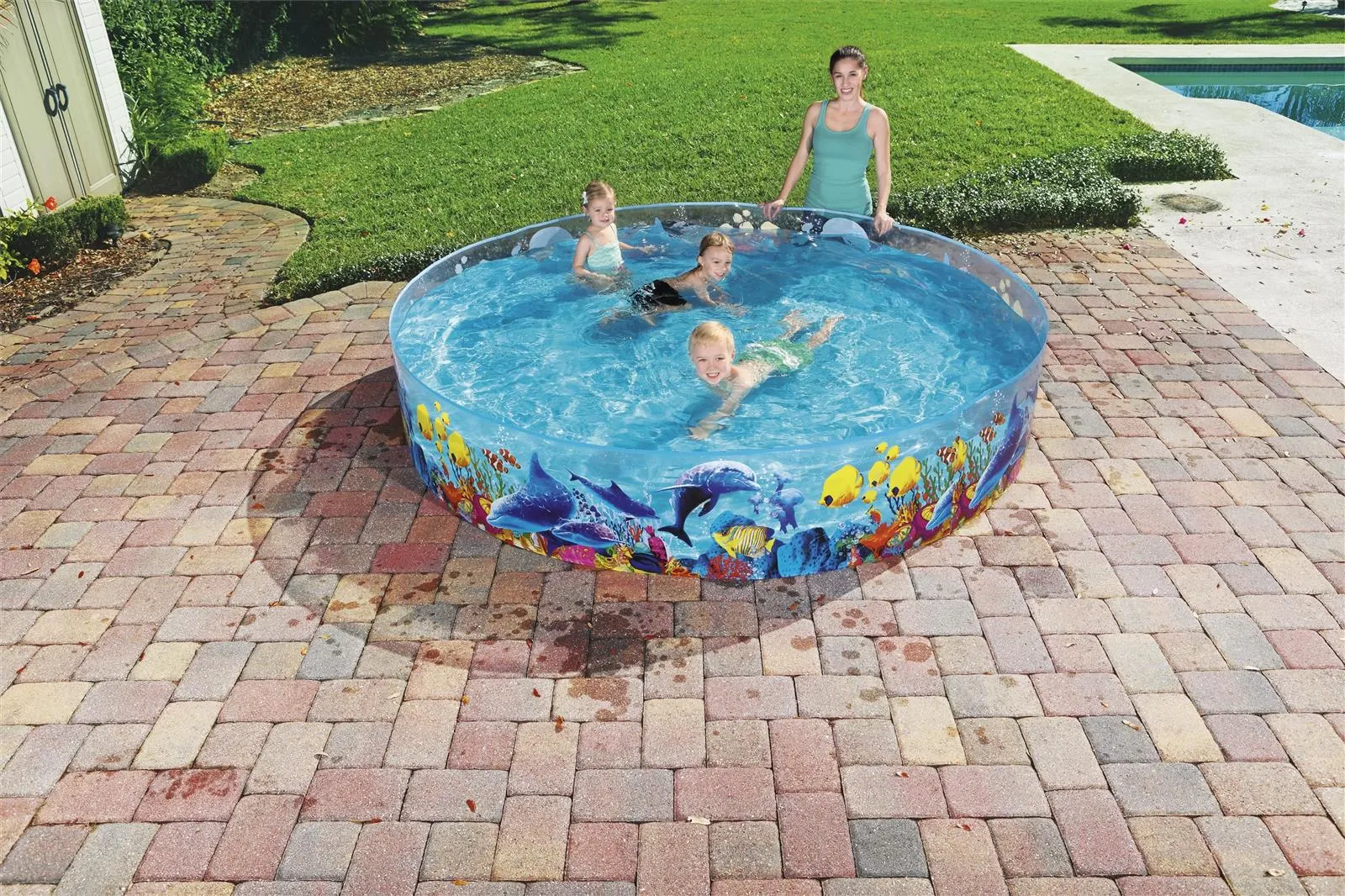 Designed for exercise and great outdoor fun, the quality-tested Fill-n-Fun™ paddling pool is all about fun! , the paddling pool is perfect for kids to splash around and play in. The outer walls feature cool, colorful underwater designs. The strong, sturdy PVC walls are securely bonded to the durable vinyl floor. Splashing around in the sun has never been more fun than with the Fill-n-Fun™ paddling pool from Bestway®.