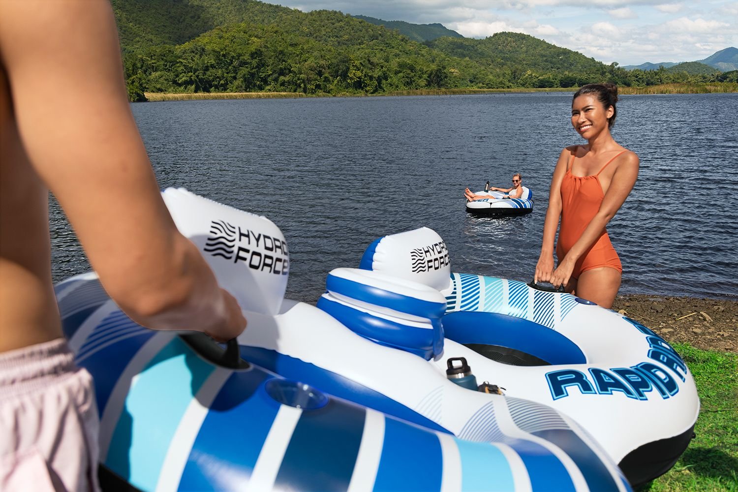 Experience the ultimate bathing pleasure with the Bestway® Hydro Force® 2-Person Rapid Rider™ II Swim Ring. With a generous size of 251 x 132 cm, it offers enough space for two people to enjoy beautiful summer days together on the water. Perfect for soaking up the sun and spending the day relaxing.