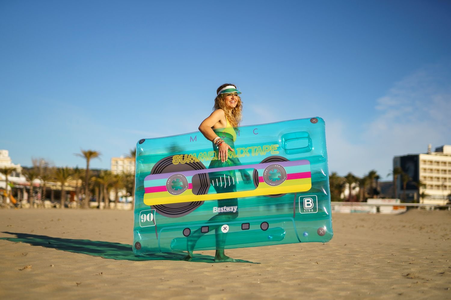 Immerse yourself in the nostalgia of the 80s with the Retro Beats™ lounge from Bestway®! With its unique retro cassette graphic, this lounge is an absolute eye-catcher on the beach or in the pool. The size of 174 x 117 cm offers enough space to relax and unwind on the water. The highlight of the Retro Beats™ lounge is the integrated storage compartment, which not only offers enough space for personal items such as keys or sun cream, but also for a waterproof Bluetooth speaker. Enjoy your favourite music directly on the water and relive the sound of the 80s. The Retro Beats™ lounge is quick to inflate and just as easy to deflate and stow away. With the supplied repair patch you are always on the safe side. The Retro Beats™ lounge from Bestway® is the perfect accessory for the summer!